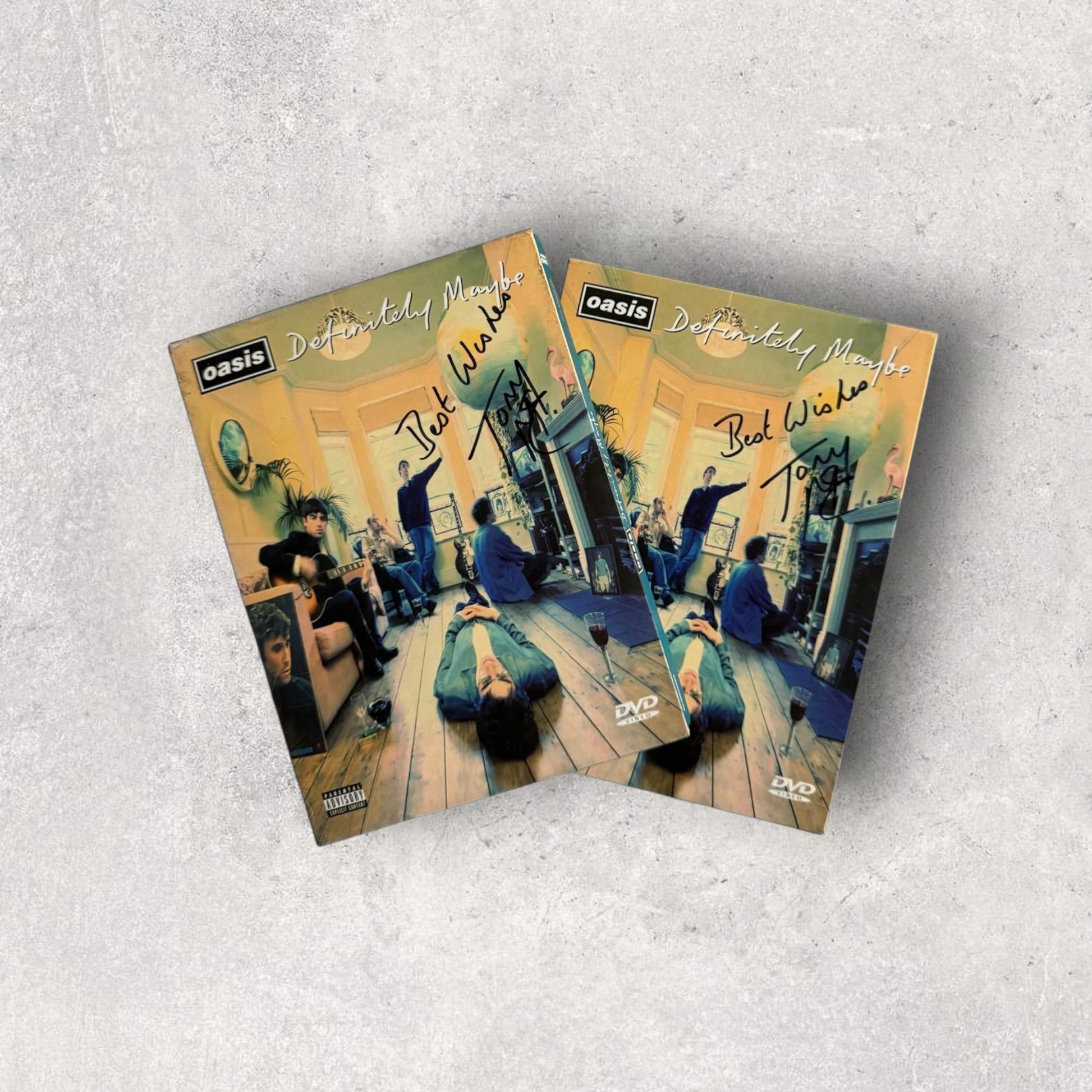 Oasis Definitely Maybe, signed on the DVD cover sleeve by Tony McCarroll.