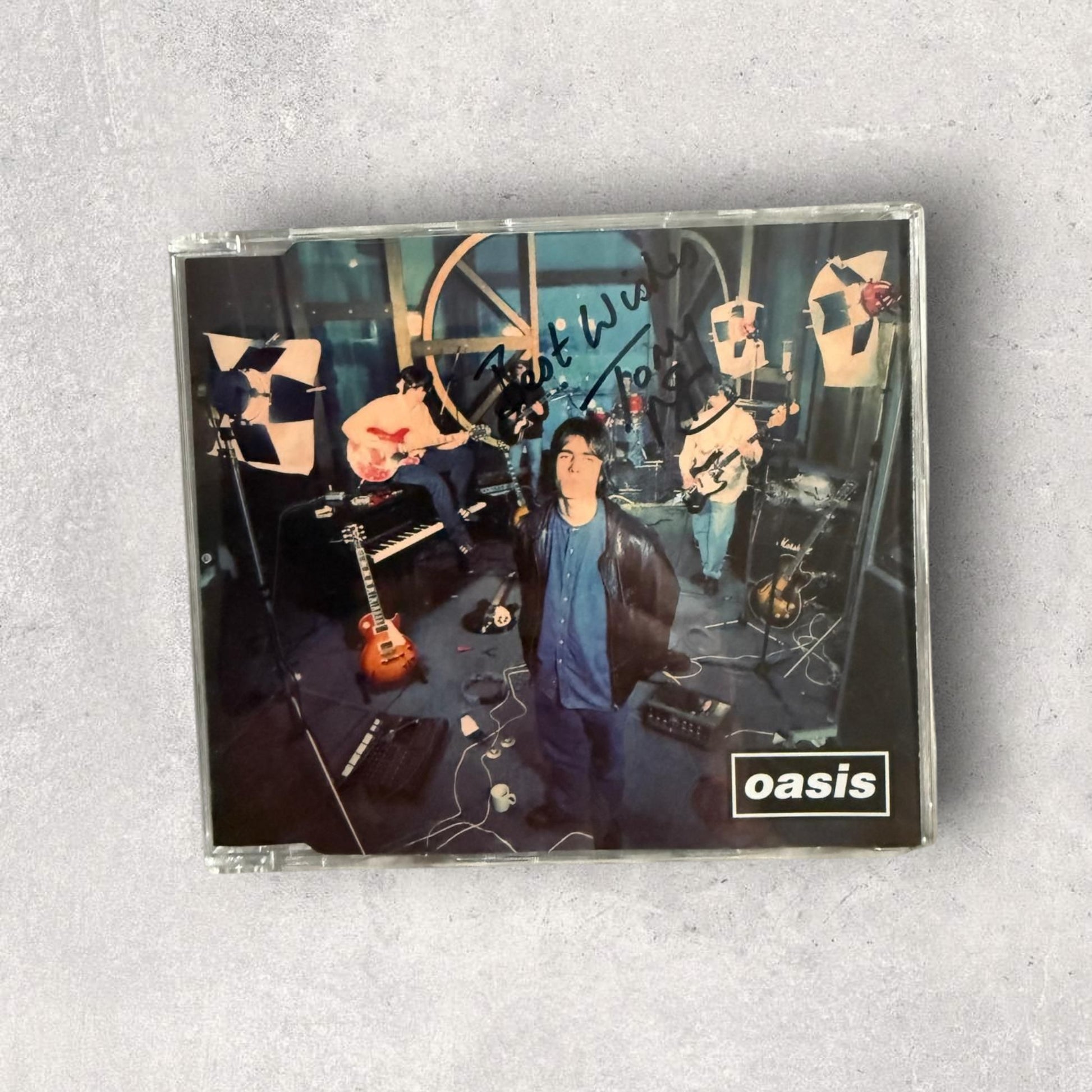 Oasis' 'Supersonic single, signed on the CD cover sleeve by Tony McCarroll.